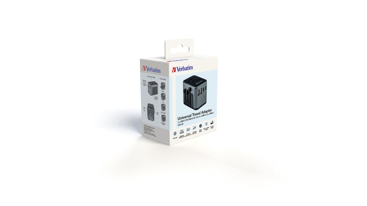 - Verbatim UTA-03 Universal Travel Adapter with 1 x USB-C PD 30W & QC 3.0 / 2 x USB-C / 2 x USB-A
