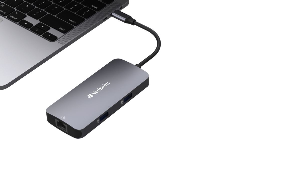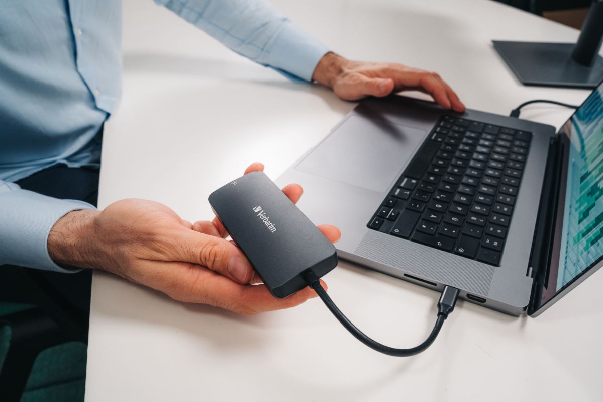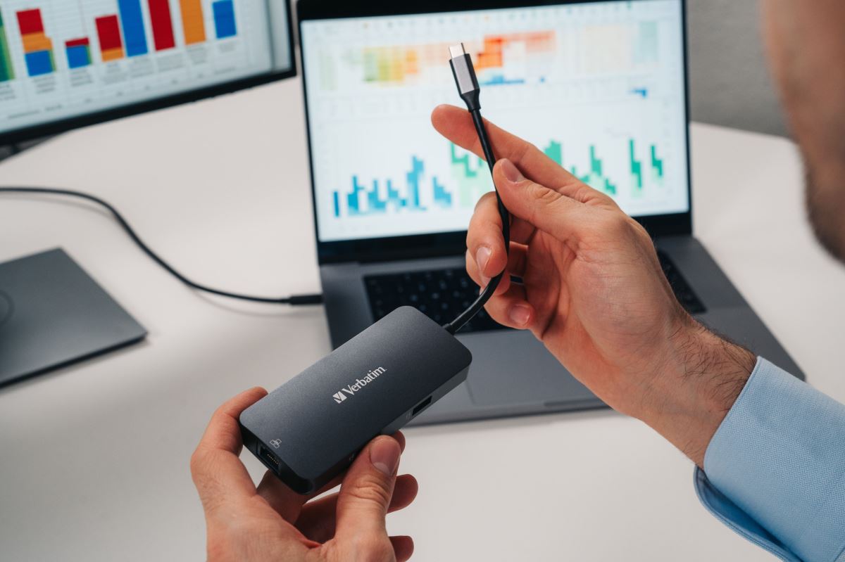 The innovative product Verbatim USB-C Pro multiport Hub 5 ports offers universal connectivity with five versatile ports, including USB 3.2 and HDMI, fast data transfer thanks to USB 3.2 Gen 1 technology and high-quality 4K video output for a sharp image during presentations or watching movies.