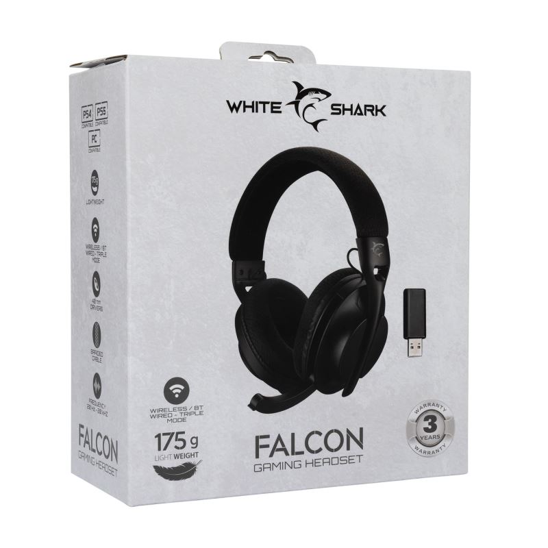 White Shark Gaming Headset Wireless FALCON, for PC, PS4/PS5, Mac, Black