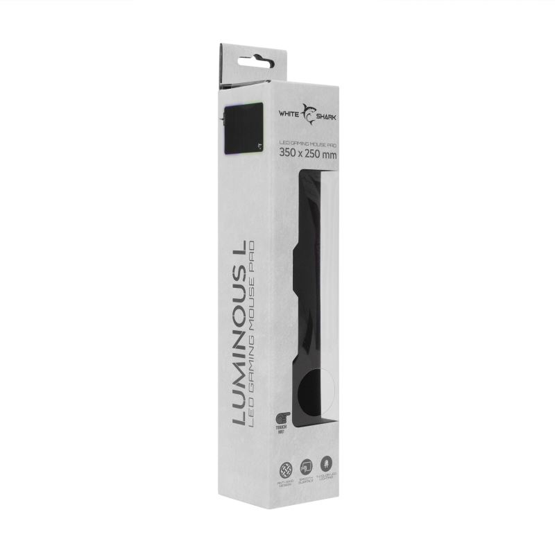 White Shark MOUSE PAD LUMINOUS L pad has a thickness of 3 mm and a size of 350x250 mm, making it comfortable and spacious for your gaming needs.